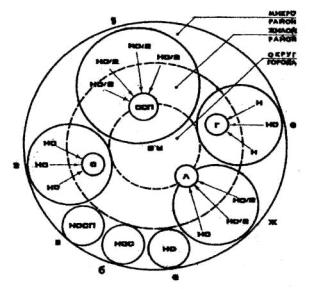 а – основная школа, тяготеющая к III ступени или профильному учреждению б – средняя полная школа I, II, III ступеней в - средняя полная школа I, II, III ступеней с профильным обучением г - школа III ступени, обслуживающая группу основных школ д- средняя полная школа II и III ступеней с профильным обучением, обслуживающая группу начальных и основных школ е – гимназия в составе II и III ступеней, обслуживающая группу начальных школ ж – лицей в составе III ступени, обслуживающий группу основных школ Н – начальная школа НО – основная школа НО/2 - основная школа (неполный комплект) НОС – средняя школа С – старшая школа Л - лицей ОСП - основная и старшая школа с профильным обучением НОСП - средняя школа с профильным обучением Г - гимназия ВУ – внешкольное учреждение Рисунок 2 КОНЦЕПЦИЯ ФУНКЦИОНАЛЬНОГО РЕШЕНИЯ ОБЩЕОБРАЗОВАТЕЛЬНОЙ ШКОЛЫ ПЕРСПЕКТИВНОЙ МОДЕЛИ