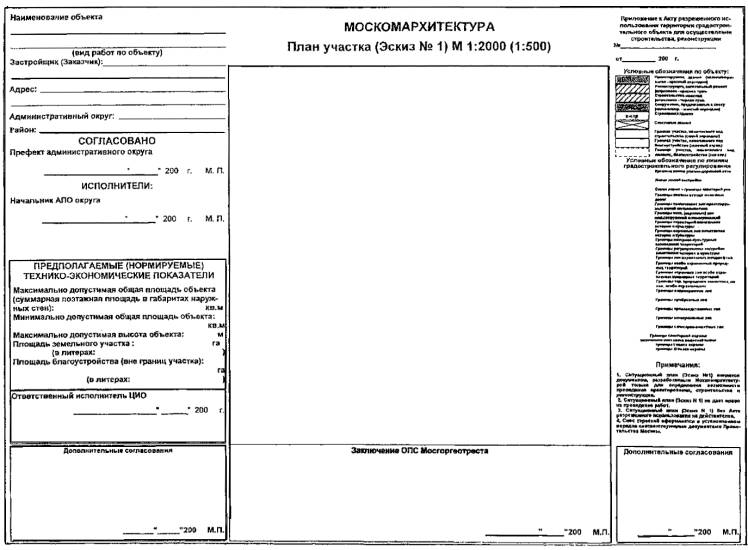 Акта разрешенного использования участка территории градостроительного объекта