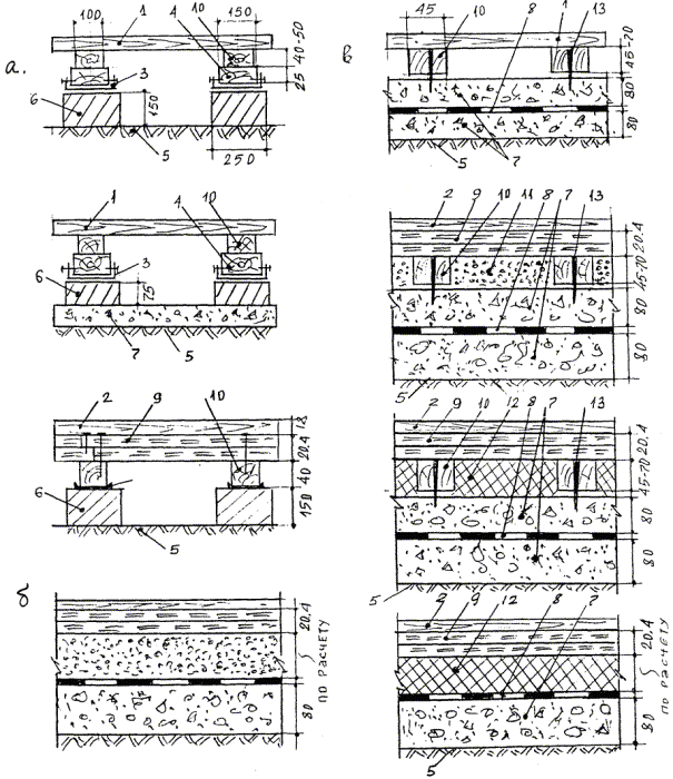 ПРЕДЪЯВЛЯЕМЫЕ ПРОЕКТИРОВАНИЕ, УСТРОЙСТВО И ПРАВИЛА Москва 2001 В Руководстве изложены технические требования, предъявляемые к полам, рекомендации по проектированию и устройству различных видов полов, а также правила их приемки. Руководство предназначено для проектных и строительных организаций, а также служб эксплуатации. Руководство разработано ОАО ЦНИИпромзданий (Гликин С.М. - Зам. генерального директора, к.т.н., Чекулаев А.П. - руководитель сектора полов, к.т.н., Мацнева Г.Ф. - инженер). Руководство рассмотрено и одобрено секцией строительных конструкций НТО ОАО ЦНИИпромзданий - протокол № К-24 от 25 мая 2001 г. Замечания и предложения по данному Руководству просим направлять по адресу: 127238, Москва, Дмитровское шоссе д. 46, к. 2 ОАО ЦНИИпромзданий РАЗДЕЛ IТЕХНИЧЕСКИЕ ТРЕБОВАНИЯ, ПРЕДЪЯВЛЯЕМЫЕ К ПОЛАМВВЕДЕНИЕ 1.1 Настоящее Руководство распространяется на проектирование и устройство полов из различных материалов, применяемых в производственных, жилых, общественных, административных и бытовых зданиях. 1.2 В Руководстве изложены технические требования, предъявляемые к полам (Раздел I) и указания по проектированию прогрессивных конструктивных решений и способам устройства различных полов по грунтовому основанию и перекрытиям (Раздел II), при которых обеспечивается соблюдение технических требований, изложенных в Разделе I. 1.3 При проектировании и устройстве полов кроме указаний настоящего Руководства должны выполняться требования действующих норм проектирования, правил техники безопасности, по охране труда и противопожарной безопасности. 1. Область применения1.1. Настоящие требования распространяются на проектирование полов производственных, жилых, общественных, административных и бытовых зданий. 1.2. При проектировании полов, кроме настоящих требований, необходимо соблюдать дополнительные требования, установленные нормами проектирования конкретных зданий и сооружений, противопожарными и санитарными нормами, а также нормами технологического проектирования. 1.3. Данные требования не распространяются на проектирование съемных полов (фальшполов), полов, расположенных на вечномерзлых грунтах и обогреваемых полов. 2. Нормативные ссылкиВ настоящем Разделе использованы ссылки на следующие нормативные документы: СНиП II-3-79* «Строительная теплотехника. Нормы проектирования». Издание 1998 г. СНиП 2.10.03-84 «Животноводческие здания. Нормы проектирования». СНиП 21-.01-97 «Пожарная безопасность зданий и сооружений». СНиП II-12-77 «Защита от шума. Нормы проектирования». СНиП 2.03.11-85 «Защита от коррозии. Нормы проектирования». СНиП 3.02.01-87 «Земляные сооружения, основания и фундаменты». НПБ 105-95. «Определение категорий помещений и зданий по взрывопожарной и пожарной безопасности». 3. Основные термины и определенияПокрытие - верхний слой пола, непосредственно подвергающийся эксплуатационным воздействиям. Прослойка - промежуточный слой пола, связывающий покрытие с нижележащим слоем пола или служащий для покрытия упругой постелью. Гидроизоляционный слой - слой, препятствующий прониканию через пол сточных вод и других жидкостей, а также прониканию в пол грунтовых вод. Стяжка (основание под покрытие) - слой пола, служащий для выравнивания поверхности нижележащего слоя пола или перекрытия, придания покрытию пола заданного уклона, укрытия различных трубопр