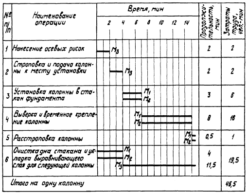 УСТАНОВКА КОЛОННЫ В СТАКАН ФУНДАМЕНТА; 3 мин; М1, М2; полуавтоматический захват