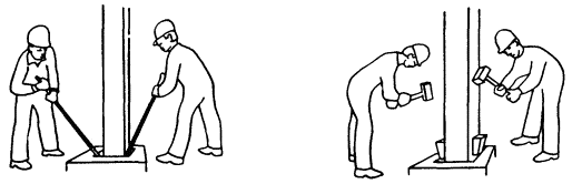ВЫВЕРКА И ВРЕМЕННОЕ КРЕПЛЕНИЕ КОЛОННЫ; 8 мин; М1, М2; ломы, кувалды, стальные клинья