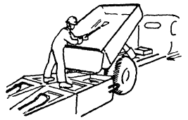 Бетонщик Б2 цепляет крюки стропа за петли бадьи. По его сигналу машинист крана подает бадью к приемному бункеру растворонасоса. Бетонщик переходит туда же, открывает секторный затвор бадьи, и бетонная смесь через вибросито поступает в приемный бункер. Разгрузив бадью, бетонщик закрывает секторный затвор и подает команду машинисту крана возвратить бадью к месту загрузки, где принимает и расстроповывает ее