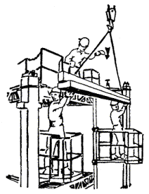 * Рабочие чертежи можно приобрести в Бюро внедрения ЦНИИОМТП. ** 121019, Москва, Г-19, ул. Маркса и Энгельса, 7/10. *** Ленинград-Центр, ул. Герцена, 31. 4. ТЕХНОЛОГИЯ ПРОЦЕССА И ОРГАНИЗАЦИЯ ТРУДА4.1. Операции по установке ригеля выполняют в следующем порядке: устанавливают поворотно-выдвижные люльки в рабочее положение; стропят ригель и подают его к месту установки; принимают и устанавливают ригель в проектное положение; выверяют и временно крепят его; расстроповывают ригель. 4.2. Организация рабочего места