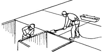 УСТРОЙСТВО РАСТРОВОЙ ПОСТЕЛИ; 4 мин; М1, М2; ящик с раствором, лопаты, кельмы, ведро с водой, столик-стремянка