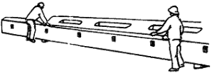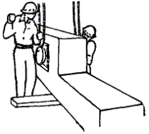 Монтажники М2 и М4, закончив строповку колонны, отходят на безопасное расстояние и дают машинисту крана сигнал поднять колонну. Машинист крана приподнимает колонну вверх, а затем укладывает ее на ребро, после чего монтажник М4 расстроповывает колонну. Монтажник М2 подает машинисту крана сигнал опустить захват к месту строповки (на середине проема), а монтажник М4 заводит его в проем колонны