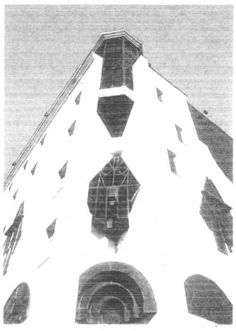 Рис. 1.2. Здание Нагорного отделения Сбербанка, г. Москва, ул. Каховка, д. 21. Рис. 1.3. Здание офиса страховой компании «РОСНО» г. Москва, Озерковская наб., д. 30. 3. Конструктивное решение системы3.1. Система, являясь многослойной конструкцией, включает следующие элементы: металлический несущий каркас, прикрепленный к основанию (несущим конструкциям наружной стены), слой негорючего минераловатного утеплителя (в случае необходимости укрытый пленкой типа «TYVEK»1), также прикрепленный к основанию, и фасадный облицовочный слой из фиброцементных плит марок «CemStone», «Cynop», «CemColor», «CemColor Structure», «CemColor Structure-Е», прикрепленных к элементам (к вертикальным профилям) несущего каркаса. При этом между облицовочным слоем и слоем утеплителя устраивается вентилируемый воздушный зазор, с помощью которого влага, накапливающаяся в утеплителе, эффективно удаляется (рис. 3.1 - 3.2). Возможен вариант применения этих систем без утеплителя только в качестве фасадной отделки зданий. 1 Пленка на чертежах условно не показана. 3.2. Несущий каркас системы включает кронштейны, несущие горизонтальные L-образные профили, несущие вертикальные П-образные и Z-образные профили, крепежные детали и другие изделия. 3.2.1. Кронштейны - это элементы, которые с помощью дюбелей и анкерных болтов соединяют несущий каркас с основанием. Для сокращения теплопотерь кронштейны примыкают к основанию через паронитовую прокладку. Кронштейны имеют длину от 50 до 250 мм и позволяют сделать систему со слоем утеплителя до 250 мм. К кронштейнам присоединяются горизонтальные L-образные профили на саморезах. Кронштейны воспринимают вертикальные нагрузки от собственного веса элементов системы и горизонтальные - от ветрового давления (напора, отсоса). В системе применяются кронштейны 2-х типов: с обычными и с овальными отверстиями. Кронштейны с овальными отверстиями позволяют горизонтальному профилю перемещаться вследствие температурных деформаций. Чертежи кронштейнов, несущих горизонтальных и вертикальных профилей, угловых и шовных планок представлены на рис. 3.3 - 3.5. 3.2.2. Каркас представляет собой перекрестную конструкцию, выполненную из гнутых стальных оцинкованных профилей. Горизонтальные направляющие крепятся к кронштейнам и изготовлены в виде L-образных профилей (равнополочных уголков). Вертикальные направляющие прикрепляются к горизонтальным на саморезах и выполнены из П-образных и Z-образных профилей. 3.2.3. Кронштейны выполняются из оцинкованной стали толщиной 2 - 5 мм марки Ст 08 ПС-5 по ГОСТ 14918-80 или DX51D-2275-МАС по EVS-EN 10204/22, вертикальные и горизонтальные профили - из оцинкованной стали толщиной 1,2 мм Ст 08 ПС ХП по ГОСТ 14918-80 или DX51D-2275-МАС по EVS-EN 10204/22, оконные и дверные откосы, отливы - из стали тонколистовой оцинкованной толщиной 0,6 - 1,5 мм по ГОСТ 14918-80 с полимерным покрытием, угловые и шовные планки из алюминиевых сплавов АМг2М и АМг2Н толщиной 0,7 мм по ГОСТ 4784-97. 3.2.4. Контакт стальных деталей с алюминиевыми следует исключить за счет прокладки между ними полимерных шайб или окраски стальных деталей. 3.3. Конструктивные решения системы у внешнего и внутреннего углов здания, у оконных проемов, у цоколя и на парапете представлены на рис. 3.6 ¸ 3.17. 3.4. Теплоизоляционный слой выполняется из минераловатных плит, которые устанавливают в один или в два слоя и крепят к стене тарельчатыми дюбелями. 3.5. Облицовку фасадов 