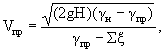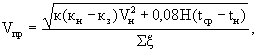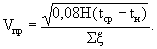 где: кн, кз - аэродинамические коэффициенты по СНиП 2.01.07-85 [4]; Vн - скорость движения наружного воздуха; к - коэффициент учета изменения скорости потока по высоте по СНиП 2.01.07-85; Н - разности высот от входа воздуха в прослойку до ее выхода из нее; tср, tн - средняя температура воздуха в прослойке и температура наружного воздуха; Σξ - сумма коэффициентов местных сопротивлений (определяется сложением аэродинамических сопротивлений). Другим вариантом определения Vпр служит формула: γн, γпр - плотности (кг/м3) наружного воздуха и в прослойке. При расположении воздушной прослойки на одной стороне стены здания, можно принять кн = кз. В этом случае, если пренебречь изменением скорости ветра по высоте формула (6) примет вид: