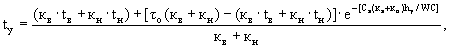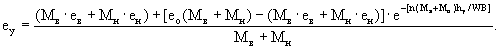где: кв и кн - коэффициенты теплопередачи внутреннего и наружного частей стены до середины прослойки; hy - расстояние между стыковыми горизонтальными швами, служащими для поступления (или вытяжки) воздуха; C - удельная теплоемкость воздуха. При определении термического сопротивления прослойки Rпр следует пользоваться формулами: Rпр = 1/αпр, (14) αпр = 5,5 + 5,7Vпр + αл, (15) где αл - коэффициент лучистого теплообмена; Св - переводной коэффициент; W - расход воздуха в прослойке, см. формулу (10). Действительная упругость водяного пара на выходе из прослойки определяется по формуле: Полученная по данной формуле величина упругости водяного пара на выходе из прослойки ey должна быть меньше максимальной упругости водяного пара Ey. Если ey > Ey, то необходимо изменить размеры воздушной прослойки. В формуле (16) Mв и Мн равны соответственно: