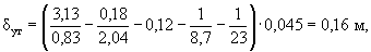 где: 0,008 м - толщина экрана при ηш = 0,1