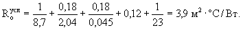 где r = 0,83 в соответствии с табл. 3 (при проемности 25 %). Сопротивление теплопередаче по глади наружной стены условное:
