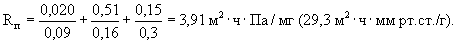 (Rп = 49 м2 · ч · мм рт.ст./г). Расчетное сопротивление паропроницанию части ограждающей конструкции, Rпн, м2 · ч · Па/мг, расположенной между наружной поверхностью и плоскостью возможной конденсации равно: Rпн = 0,008/0,03 = 0,26 м2 · ч · Па/мг (2 м2 · ч · мм рт.ст./г). Требуемое сопротивление паропроницанию Rп, из условия недопустимости накопления влаги за год эксплуатации: