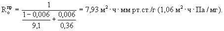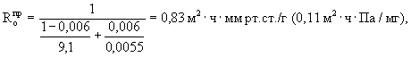 Следующим этапом расчетов является учет воздухозаборных отверстий приведенной площадью S = 0,006 м2 на 1 м2 экрана. Условное приведенное сопротивление паропроницанию определяется по формуле (21): при ηш = 6,5