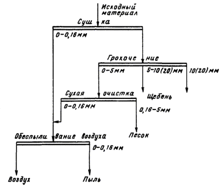Технологическая линия ВНИИнеруда для переработки отсевов дробления сухим способом: