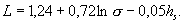 где квлп - коэффициент влагопроводности, устанавливаемый экспериментально, см2/час; tвл - продолжительность периода осеннего влагонакопления, час, принимаемая по табл. П.1.7 (см. Приложение); hв - расчетное удаление верха земляного полотна от уровня грунтовых или поверхностных вод, см; hдо - суммарная толщина слоев дорожной одежды, см; L - характеристика слоя промерзания грунта земляного полотна. 2.4.1.12. Величину L для случаев квлп £ 2,0 см2/час устанавливают по выражению: