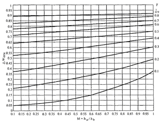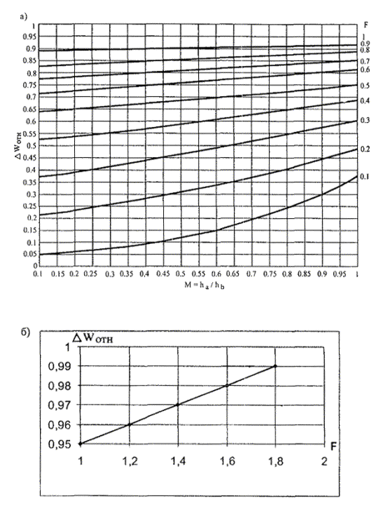 3. Определяем параметр М в соответствии с (2.7) М = (160 - 60)/120 = 0,83 см. 4. По графику рис. 2.4 находим DWотн = 0,73. 5. Приняв rт = 2,68, получим Wпв = 1/1,66 - 1/2,68 = 0,23. 6. По зависимости (2.10) вычисляем характеристику скорости промерзания