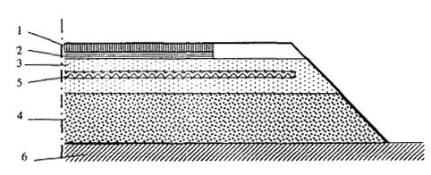 получаемое по формуле значение 2.4.3. Схемы конструктивных решений дорожных одежд с термоизолирующими слоями из «Пеноплэкса»2.4.3.1. Принципиальная схема дорожной конструкции с термоизолирующим слоем представлена на рис. 2.8. Прослойка «Пеноплэкса» со смежными слоями образуют единый дополнительный слой основания (ДСО), который может кроме термоизолирующей функции при необходимости нести одновременно функции дренирующего и морозозащитного слоя. Схема предполагает необходимость: - обеспечения эффективности полной или частичной теплозащиты пучинистого грунта земляного полотна от промерзания; - требующегося обеспечения дренирования дорожной одежды; - учета снижения расчетного модуля упругости земляного полотна, защищаемого слоем «Пеноплэкса»; - защиты слоя «Пеноплэкса» от механических повреждений в процессе строительства; - учета двухмерности схемы промерзания полотна. 1 - покрытие; 2 - несущее основание; 3 - дополнительный слой основания с термоизолирующей прослойкой; 4 - пучинистый грунт; 5 - термоизолирующая прослойка; 6 - грунт в основании насыпи. Рис. 2.8. Принципиальная схема дорожной конструкции с термоизолирующим слоем (для условий сезонного промерзания). 2.4.3.2. Эффективность теплозащиты достигается: - правильным расположением теплоизолирующей прослойки в конструкции; - правильным назначением ее толщины и ширины. 2.4.3.3. Требуемая толщина теплоизолирующего слоя определяется по методике, изложенной в п. 2.4.1. Необходимая ширина теплоизолирующей прослойки принимается равной не менее, чем на 2,0 - 1,5 м больше ширины проезжей части или равной ширине земляного полотна по верху. При необходимости требуемая ширина может быть уточнена на основе специальных расчетов по двухмерной задаче (учет двухмерности). 2.4.3.4. Дренирование дорожной одежды с теплоизолирующим слоем обеспечивается устройством дренирующего слоя, который может предусматриваться в трех вариантах: - в виде песчаного слоя, располагаемого под теплоизолирующим; - в виде песчаного слоя, вмещающего в себя теплоизолирующий слой; - в виде дренирующего слоя из геотекстиля, обладающего продольной водопроницаемостью. 2.4.3.5. Толщина дренирующего слоя определяется расчетом по методике, изложенной в ОДН 218.046-00. Если термоизолирующий слой предусматривает исключение промерзания пучинистого грунта земляного полотна, из расчета дренирующего слоя исключается учет поступления воды снизу. 2.4.3.6. Для учета влияния низкомодульного теплоизолирующего слоя на прочность дорожной конструкции теплоизолирующий слой рассматривается как элемент земляного полотна. Расчетный модуль земляного полотна с такой прослойкой устанавливается в соответствии с п. 2.4.2. С учетом его величины осуществляется расчет дорожной одежды на прочность и назначение ее конструкции по всем условиям прочности. 2.4.3.7. При устройстве слоев дорожной одежды, расположенных выше теплоизолирующей прослойки, возникает опасность разрушения прослойки построечным транспортом или применяемыми дорожными машинами. Для защиты слоя из «Пеноплэкса» толщина засыпки над этим слоем не должна быть менее 30 см (при одноразовой отсыпке). Этот слой при необходимости может быть запроектирован как дренирующий или дополнительный морозозащитный слой. 2.4.3.8. Возможные варианты конструкции дополнительного слоя основания (ДСО) с теплоизолирую