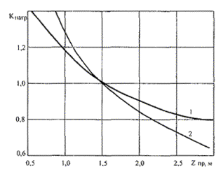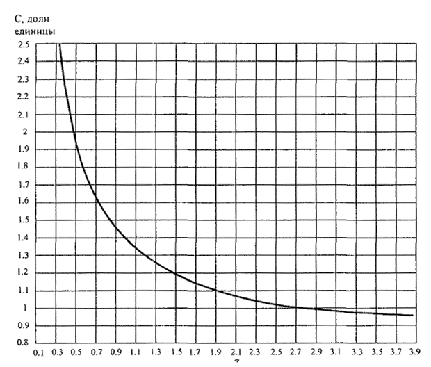где Wh - влажность грунта по жидкой фазе в зоне первичного льдовыделения (при температуре грунта -0,5 ... -1,0 °С). Значения Wh для разных грунтов приведены в таблице П.1.5; С - коэффициент, определяемый по графику рис. П.1.5 в зависимости от величины критерия зимнего влагонакопления Z, вычисляемого, в свою очередь, из соотношения: