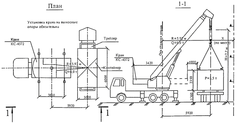 Рисунок 15 - Погрузка и разгрузка контейнера с грузом до 5 т краном КС-3577