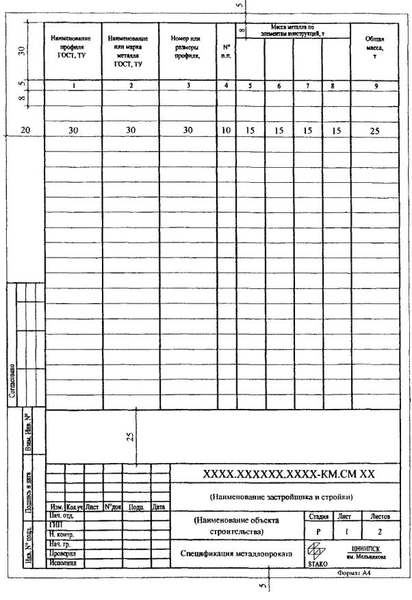 чертежах марки КМ, вносят в таблицу по форме 1: