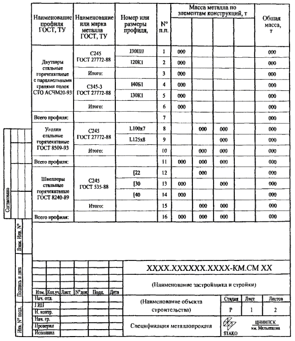 спецификация металлопроката.