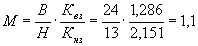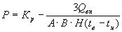 где Кр - кратность инфильтрационного воздухообмена, 1/ч; Рис. 4. Определение поправочного коэффициента для расчета тепло потерь M = (B/h)Квз/Кн; P = Kp - 3Qвн[A´B´H(tв - tн)] А, В, Н - соответственно длина, ширина и высота отапливаемого здания (при отсутствии внутренних перегородок) или отапливаемого помещения, отделенного перегородкой от остальной части здания, м; tн - расчетная наружная температура, °С. Показатель М определяется по формуле:
