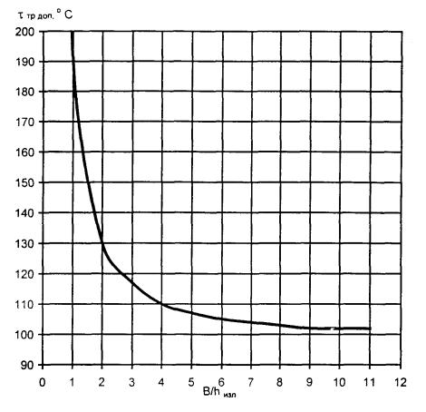 Рис. 5. Зависимость максимально допустимой температуры поверхности излучателей от В/hизл при Fтр = 0,15Fnx Рис. 6. Определение расчетной температуры поверхности труб Расчет ведется итерационным методом. Рекомендуется в первом приближении принимать rг = 0,7 кг/м3. При задании Gтр следует учесть, что в расчетном режиме циркуляционный вентилятор перемещает нагретый воздух, температура которого определяется расчетом в п. 3.10. По техническим условиям для вентилятора максимальная температура перемещаемой среды (в обратной магистрали) не должна превышать 200 °С. Поэтому Gтр в первом приближении определяется по формуле: