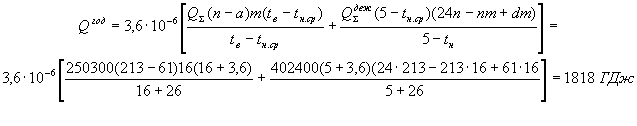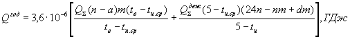 где Qp = max(QS; QSдеж); hтг - КПД теплогенератор (таблица 2); Qнр - удельная теплота сгорания газа, кДж/м3. 3.13. Среднегодовой расход теплоты на отопление: