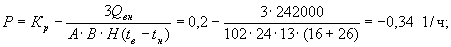 Р = Кр = 0,2 1/ч По графику на рис. 4 с = 1,058. QSдеж = 1,058 × 380300 = 402400 Вт. Qизл = Q/b = 250300/1,03 = 243010 Вт. По графику на рис. 5 средняя температура