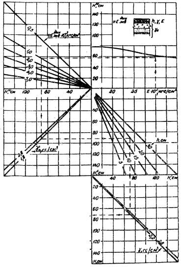 ПРИЛОЖЕНИЕ 4Расчетные номограммы и параметры для определения потенциальной энергииРис. 4.1. Номограмма для определений глубины зоны динамического деформирования: γ - объемный вес плиты покрытия; γ0 - средний объемный вес подстилающего плиту сплошного или слоистого полупространства Таблица 4.1 Значения глубины зоны активного динамического деформирования