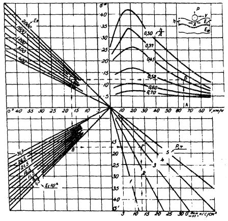 Рис. 2. Номограмма для определения скоростей колебаний дорожных одежд:
