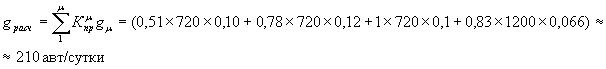 Долю расчетных автомобилей в потоке (gрасч) определяют по формуле