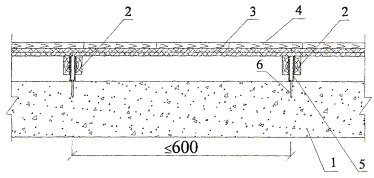 2.6.2 Водно-дисперсионные клеи представляют собой составы на основе водных дисперсий или латексов полимеров, наполнителей и необходимых добавок (стабилизаторов, загустителей, смачивателей и т.п.). Клеи «Дивитекс» (ТУ 5770-072-00284718-93) изготавливаются на основе дивинилстирольного латекса СКС-05-ГП или СКС-50-ГП, клей «ПВА» - на основе поливинилацетатной дисперсии согласно ГОСТ 18992-80*. Водно-дисперсионные клеи не содержат вредных и токсичных веществ и разрешены к применению органами санэпидемнадзора. При использовании водно-дисперсионных клеев паркет укладывают на клеевую прослойку сразу же после нанесения клея на основание. Расход водно-дисперсионных клеев на 1 м2 пола составляет 0,4 - 1,0 кг в зависимости от вида применяемого материала и типа клея. Водно-дисперсионные клеи хранят при температуре не ниже 5 °С. Клей, выступающий из швов, и следы клея на поверхности удаляют ветошью сразу после наклейки. Водно-дисперсионные клеи с рук смываются водой. 2.6.3 Клеи на основе синтетических смол и каучуков представляют собой растворы в органических растворителях синтетических смол и каучуков с наполнителями и добавками. Клей «Перминид» (ТУ 400-1-136-78) изготавливается на основе перхлорвиниловой смолы и дивинилстирольного каучука с растворителем - этилацетатом и наполнителем - каолином и добавками. Клеящие каучуковые мастики КН-2 и КН-3 по ГОСТ 24064-80 приготавливаются на основе полихлоропренового каучука и инденкумароновой смолы с растворителями - этилацетатом и бензином, наполнителем - каолином и добавками. При использовании клеев на основе синтетических смол и каучуков их наносят на тыловую сторону и на основание слоем толщиной 0,2 - 0,3 мм и выдерживают «до отлипа» для испарения растворителя. Время выдержки зависит от характера основания и температурно-влажностного режима в помещении и составляет от 15 до 40 минут. Расход клеев на основе синтетических смол и каучуков на 1 м2 пола при нанесении за 1 раз составляет 0,4 - 0,5 кг. 2.6.4 Битумная мастика «Универсальная» (ТУ 5075-001-03989419-93) представляет собой смесь битума, растворителя, наполнителя и добавок и используется для приклеивания планок паркета при согласовании с местными органами санэпидемнадзора. При использовании битумной мастики толщина клеевого слоя должна составлять для паркета 0,8 - 0,9 мм. Расход битумной мастики на 1 м2 пола составляет 0,8 - 0,9 кг. Пятна от битумной мастики на лицевой поверхности покрытия удаляют ветошью, слегка смоченной бензином или уайт-спиртом, сразу после наклеивания. Хождение по полу разрешается не ранее чем через 24 часа после настила покрытия. Битумную мастику следует хранить в плотно закрытой таре. 2.6.5 Клеи и мастики наносят на нижележащий слой при помощи пластмассовых, деревянных или металлических зубчатых шпателей. Размер и форма зубцов шпателя должны обеспечивать нанесение клея или мастики слоем требуемой толщины. 2.6.6 Клеи на основе синтетических смол и каучуков из-за их огне- и взрывоопасности нельзя наносить металлическим шпателем. 2.7 Конструкция пола из штучного паркета на регулируемых лагах представлена на рисунке 3. 1 - железобетонная плита или стяжка; 2 - регулируемые лаги; 3 - два слоя водостойкой фанеры; 4 - паркет; 5 - пластиковые болты-стойки; 6 - дюбель-гвоздь Рисунок 3 - Конструкция пола из штучного паркета по регулируемым лагам 2.8 Основанием под лаги может служить железоб