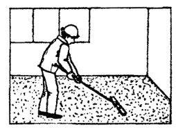 2.13.1 Подмести основание пола со смачиванием водой, соскоблить налипший раствор (при необходимости), вынести мусор.