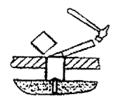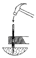 2.13.8 Перевернуть добойник другим концом и забить дюбель-гвоздь, воздержавшись от «последнего удара», чтобы болт-стойку было легче ввинчивать согласно следующему пункту.