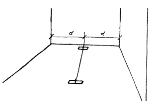 2.13.13 При помощи шнура определить середину двух противоположных стен и забить в пол два штыря. На высоте, равной толщине планки, натянуть по штырям шнур, который будет являться осью помещения.