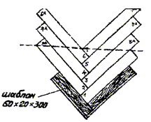 2.13.18 Для заполнения примыканий к стенам собрать насухо угол в шаблоне, отметить с помощью линейки линию реза, пронумеровать планки и обрезать их электропилой.