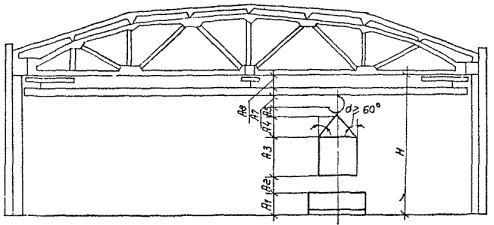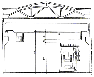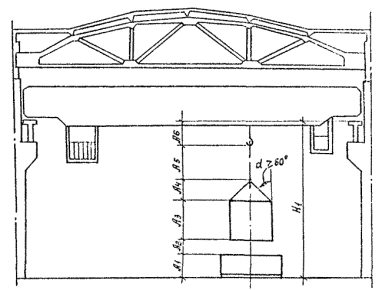 *) При обосновании в каждом конкретном случае Примечания: 1. При реконструкции и техническом перевооружении цехов (участков), расположенных в существующих зданиях, допускается их размещение в помещениях высотой, менее указанной в таблице, при условии соблюдения норм и правил техники безопасности, удобства обслуживания и эксплуатации технологического и подъемно-транспортного оборудования. 2. Расчетную высоту пролета определять по формулам (7 - 11) и условиям, приведенным на рис. 1, 2 и в табл. 14, и принимать по ближайшему большому значению в табл. 13. Унификацию высот многопролетных зданий проводить в каждом конкретном случае по максимальной высоте при обосновании. 3. Ширина пролетов 30 м и более, шаг колонн 18 м, высота головки рельса свыше 14,8 м, в том числе двухъярусное расположение кранов, принижается при соответствующих обоснованиях. Таблица 14