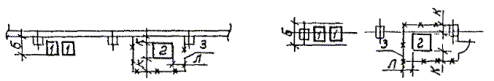 Рис. 8. Размещение источников питания (рекомендуемое): 1 - однопостовой источник питания; 2 - многопостовой источник питания; 3 - ограждение сетчатое. Примечания: 1. Размеры ограждения зависят от габаритов источника питания и условий их обслуживания. 2. При недостаточном количестве свободной площади между колоннами допускается размещение однопостовых источников на специальных балконах. При этом пусковая регулирующая аппаратура источников должна быть установлена на рабочих местах. Таблица 21
