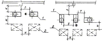 Рис. 10. Размещение автоматов для сварки кольцевых швов: 1 - сварочный автомат; 2 - место складирования. Размещение средств механизации Таблица 23