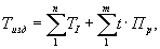 где ТI - трудоемкость изготовления узлов изделия на автоматических и механизированных линиях, определяемая по расстановке рабочих (формула 27); Пр - плотность бригады (см. табл. 34); t - штучное время изготовления узлов изделия на отдельно стоящем оборудовании; n, m - количество сборочных единиц в комплекте, изготовляемых соответственно на линиях и отдельно стоящем оборудовании. Штучное время изготовления узлов изделия (t) на отдельно стоящем оборудовании подсчитывается по формуле t = tоп · К, (24) где tоп = tоoн + tвсп (25) - оперативное время на одну операцию, мин.; tоoн - машинное время для всех видов контактной сварки, сварки трением, время горения дуги при всех видах дуговой сварки, время, затраченное на образование сварного шва (реза) при газовой сварке (резке) и т.д.; tвсп - вспомогательное время, связанное с образованием сварного шва (реза) и время, затраченное на сборку деталей, их фиксацию, крепеж, подборку, подгонку, съем готового узла и укладку его в тару или навеску на конвейер;