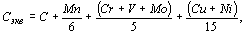 где С, Mn, Cr, V, Mo, Си, Ni - фактическая, массовая доля в стали углерода, марганца, хрома, ванадия, молибдена, меди и никеля, %.
