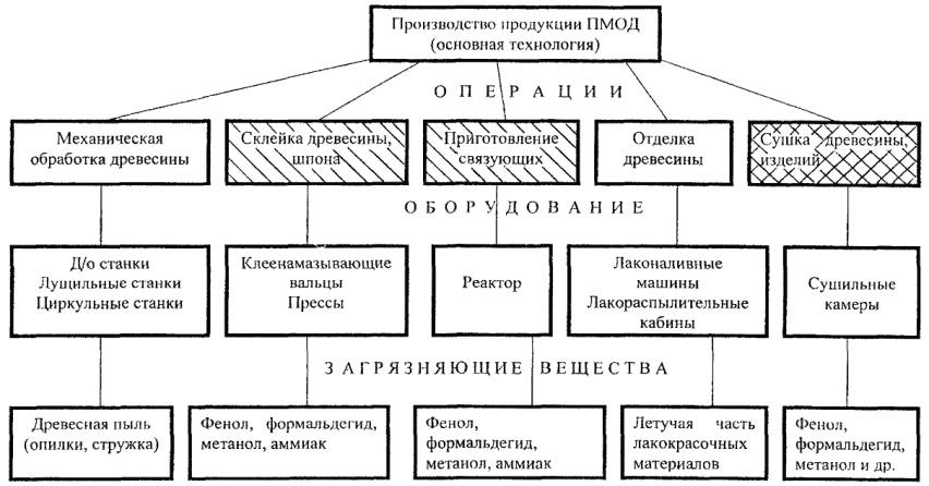 1.3. Общие положения и организация проведения работ по инвентаризации источников выбросов загрязняющих веществ в атмосферу [18].Инвентаризация выбросов производится на предприятии с целью учета поступления в атмосферу загрязняющих веществ, разработки мероприятий по их улавливанию и обезвреживанию, установления предельно допустимых (ПДВ) и временно согласованных (ВСВ) выбросов. 2. Количественный и качественный состав выбросов загрязняющих веществ в атмосферный воздух от основных технологических процессов.2.1. Классификация источников газопылевых выбросов.На рис. 2.1 приводится классификация источников загрязнения атмосферного воздуха основными технологическими процессами деревообрабатывающей промышленности. Настоящая методика содержит расчетные формулы и удельные показатели выделений (выбросов) загрязняющих веществ от ряда основных производственных процессов и оборудования, изученных достаточно хорошо с точки зрения воздействия их на атмосферный воздух. Определение качественного и количественного состава газовыделений от других технологических процессов, таких как количественное выделение фенола, формальдегида, метанола при сушке древесины и др. требуют дальнейшей проработки. Рис. 2.1. Классификация источников загрязнения газопылевых выбросов предприятий механической обработки древесины