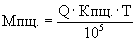 где: Q - расчетная часовая производительность пневмотранспортера, кг/ч; Кпщ. - содержание пыли в щепе, %. (Приложение 2.2.3); Т - продолжительность работы технологического оборудования, ч/год; Мпщ. - количество пыли, выделяющейся при производстве щепы, (т/год). Расчетная часовая производительность пневмотранспортера определяется по формуле [1]: