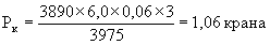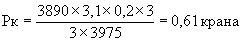 где Рк - расчетное количество мостовых кранов, ед.; Фэп - эффективный годовой фонд времени работы электропечи, ч; П - часовая производительность электропечи, т; п - затраты времени работы крана на одну плавку, крано-ч; Рп - принятое количество электропечей, ед.; Ом - единовременный выпуск жидкого металла в ковш (плавка), т; Фэк - эффективный фонд времени работы мостового крана, ч. В основу формулы расчета количества мостовых кранов положены затраты времени в крано-часах на одну плавку по всем операциям, связанным с выплавкой жидкого металла в зависимости от его массы. Пример расчета. Расчет количества мостовых кранов, занятых на выполнении основных работ (выпуск металла в ковш по 3 т и загрузка шихты), для трех электропечей вместимостью по 10 т каждая: