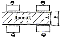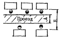 Примечания: 1. Магистральный проезд предназначается для межцеховых перевозок, иногда с возможностью проезда автомобиля, и может быть продольным и поперечным, преимущественно сквозным. Размер магистрального проезда следует принимать равным 5,0 - 6,0 м. 2. Высоту проемов для проездов следует устанавливать с учетом максимальных размеров транспортных грузов и ряда высот согласно требованиям ГОСТ 23.837-79. В отдельных случаях допускается снижение высоты проезда до 2,3 м при соответствующем обосновании. 3. Размеры проходов и проездов следует предусматривать от наружных габаритов оборудования с учетом ограждений. 4. Передаточные тележки на рельсовом пути не следует размещать на магистральном проезде. 6. Ширина проезда дана в таблице с учетом возможности поворота электропогрузчика на 90°. 6. При поперечном размещении транспортируемого груза размером свыше 3,0 м ширину проезда и расстояние от него до оборудования следует устанавливать в каждом конкретном случае. 7. Вдоль наружных остекленных стен следует предусматривать проезд. Нормы размеров прохода для обслуживания и ремонта конвейера, транспортирующего теплоизлучающие грузы в тоннеле, на галерее и площадке, приведены в табл. 62. Таблица 62