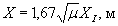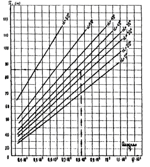 где ХI - длина струны, определяемая по номограмме в зависимости от соотношения концевого груза Q в линейной плотности каната q, (кГ/м); μ - фактическое отношение глубины желоба на барабане, принимаемой по заводским данным, к радиусу каната.