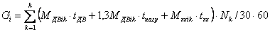 где Мдвik и Mxxik - удельные выбросы ЗВ дорожными машинами соответственно при движении без нагрузки и при работе на холостом ходу (табл.2.3 и 2.4); 1.3 Мдвik - удельный выброс ЗВ при движении под нагрузкой, рассчитанный исходя из того, что при увеличении нагрузки увеличивается расход топлива; Nk - наибольшее количество дорожных машин каждого типа, работающих одновременно в течение 30-ти минут. Валовый выброс рассчитывается для каждого периода года по каждому типу техники по формуле: