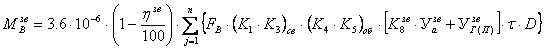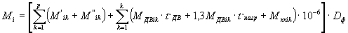 где M'ik и M"ik - выбросы при въезде и выезде с территории площадки, ф-лы 2.1 и 2.2 указанной Методики; t’дв - суммарное время движения без нагрузки всей техники данного типа в течение рабочего дня, мин.; t’нагр - суммарное время движения с нагрузкой всей техники данного типа в течение рабочего дня, мин.; t’хх - суммарное время холостого хода для всей техники данного типа, в течение рабочего дня, мин.; Dф - суммарное количество дней работы ДМ данного типа в расчетный период года. 3.Для запуска дорожной техники [35] могут применяться электродвигатели или двигатели, работающие на бензине. Таким образом, при использовании пускового бензинового двигателя должны определяться выбросы углеводородов от дорожной техники по бензину и керосину. 4.Расчет выбросов от автопогрузчиков при прогреве двигателя, работе на холостом ходу и маневрировании по территории для въезда (выезда) рекомендуется выполнять по методике [34], используя показатели для грузовых автомобилей с аналогичными двигателями и грузоподъемностью. Расчет выбросов от автопогрузчиков на разных рабочих режимах рекомендуется выполнять, используя формулы (1.2) и (1.3) с применением удельных показателей выбросов для грузовых автомобилей с аналогичным типом двигателя и грузоподъемностью. 5. Расчетную схему 2 для оценки выбросов на внутренних проездах в методике [34] целесообразно использовать в случаях: - когда на производственной территории имеется несколько стоянок автотранспорта. В этом случае рассматриваются в виде конкретных источников отдельно каждая из стоянок (при этом расстояние маневрирования по территории стоянки принимается до выездных ворот (границ) каждой стоянки и отдельно движение автотранспорта по внутреннему проезду (от ворот (границ) каждой стоянки до выездных ворот территории предприятия). В последнем случае внутренний проезд в зависимости от интенсивности движения на отдельных участках проезда может разбиваться на несколько источников; - когда необходимо учесть постоянное движение автотранспорта по производственной территории. 6. В п. 19.а «Дополнения и изменения к методике ...» [48] под критерием часа, характеризующегося максимальной интенсивностью выезда автомобилей, следует понимать час максимальной интенсивности выезда автомобилей в разрезе каждого загрязняющего вещества. В п. 19.в «Дополнения и изменения к методике ...» [48] влияние холодного и переходного периода года на выбросы загрязняющих веществ учитывается только для автомобилей, хранящихся на открытых и закрытых неотапливаемых стоянках. 7. На автотранспортных предприятиях при расчете выбросов от кузнечных горнов и нагревательных печей (см. п. 5 подраздела 1.2.1) при сжигании мазута, нефти в составе твердых определяются: - мазутная зола теплоэлектростанций (в пересчете на ванадий) по формулам (3.5.8) и (3.5.10) [34]; - углерод черный (сажа) - по формулам (3.5.1) и (3.5.2) [34] как разность между суммарным количеством поступающих в атмосферный воздух твердых частиц и количеством мазутной золы (в пересчете на ванадий). При сжигании дизельного топлива и других легких жидких топлив определяются только суммарные выбросы твердых частиц по формулам (3.5.1) и (3.5.2) [34], которые классифицируются как: - углерод черный (сажа). Примечание: Положения данного пункта распространяются и на методику [47]. 7. В ОНТП-01-91 (Росавтотранс, М., 1991) указано, что во вр