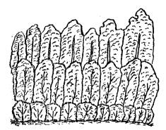 Рис. 16. Вертикальный разрез снежного шлейфа. По данным журнала снегомерной съёмки, строится профиль снежных отложений для определения объема снегозадержания 1 п.м снегополосы. Пример определения снежных отложений по профилю (рис. 15). Площадь поперечного сечения сугроба равна сумме трапеций, составляющих сугроб.