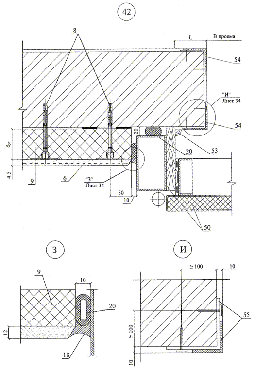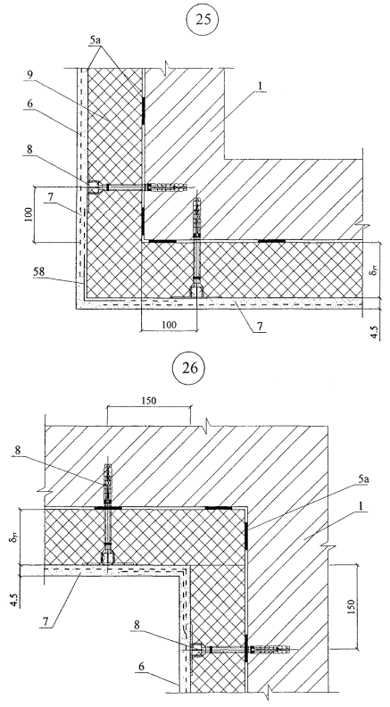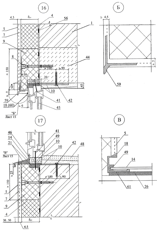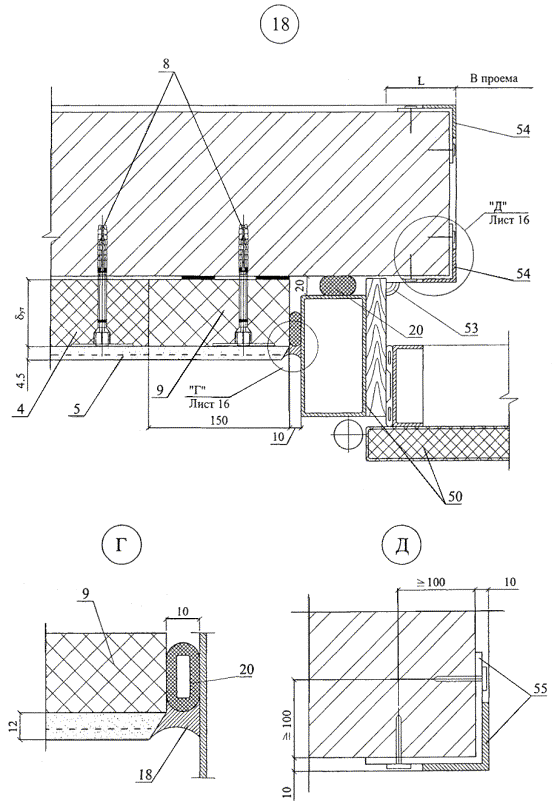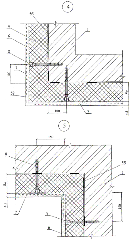 - участки стен, образующие внутренние углы здания, при наличии хотя бы в одной из них оконных проемов (включая внутренние углы, образуемые стенами и ограждением остекленных лоджий (балконов)), расположенных на расстоянии 1 м и менее от этого угла, должны выполняться на ширину оконного проема и до внутреннего угла и на всю высоту здания с применением в качестве утеплителя вышеуказанных в пп. 1 и 2 настоящего приложения негорючих минераловатных плит;